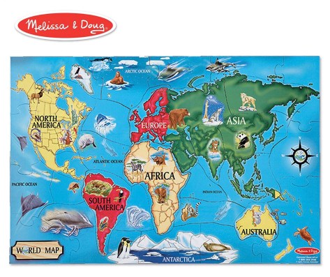 Melissa & Doug World Map Jumbo Jigsaw Floor Puzzle (Wipe-Clean Surface, Teaches Geography & Shapes, 33 Pieces, 24″ L x 36″ W)