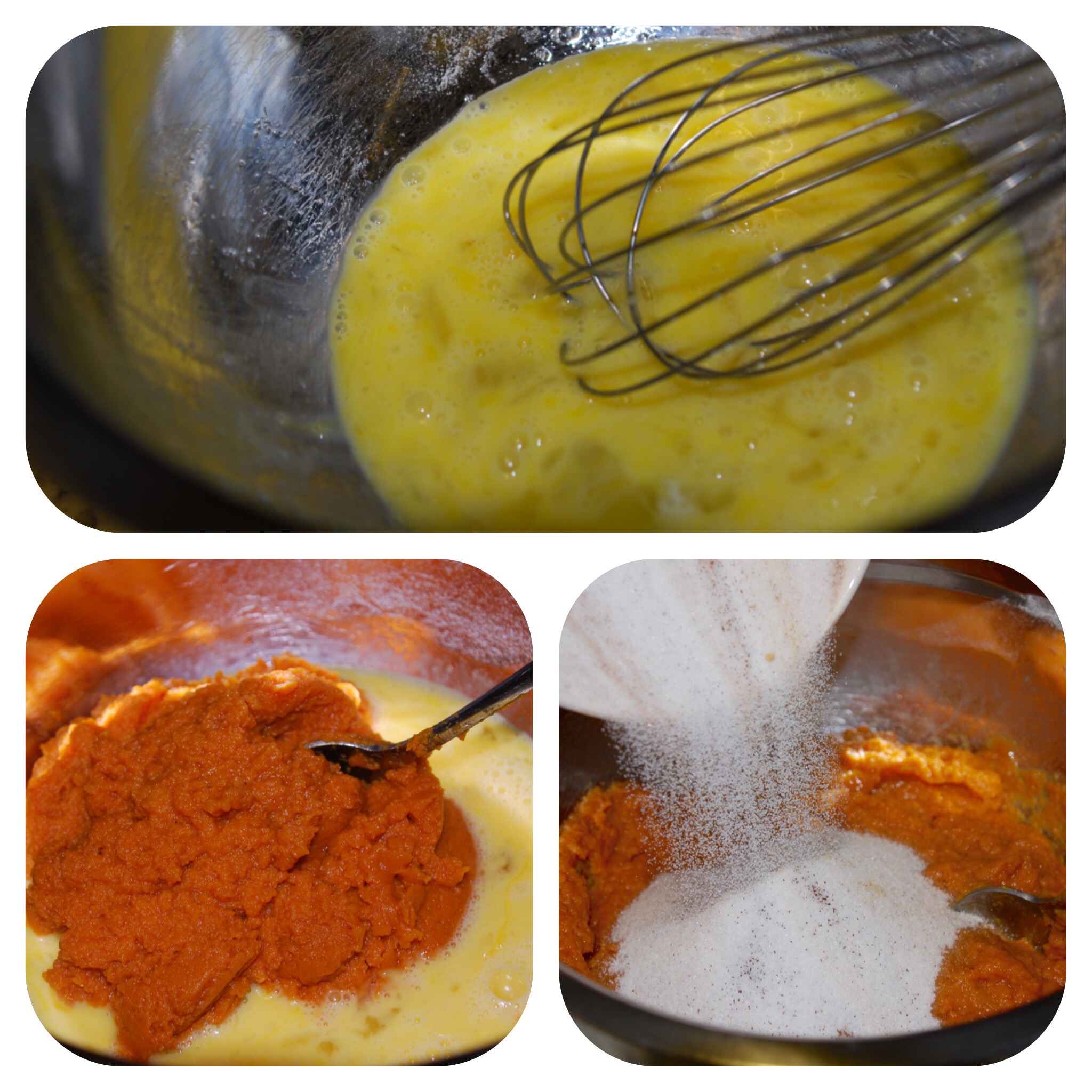 In a large bowl, beat eggs until frothy. Add the can of pumpkin and sugar/spice mixture to eggs and stir until well blended. Shake can of evaporated vigorously before opening, then add to pumpkin mixture. Stir until well blended and smooth.