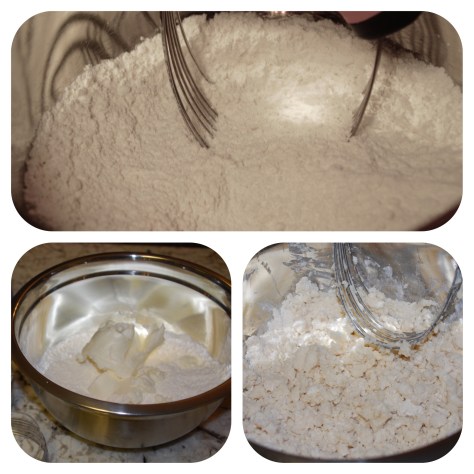 Sift flour and salt together. (I just use a wire whisk to blend and fluff the flour. The air mixed into the flour makes a lighter crust.)