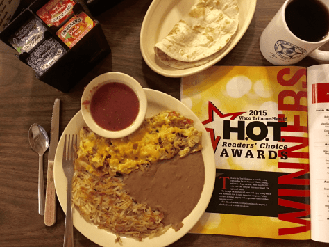 Then, the restaurant was was given a readers choice award by Waco Today Magazine for having the best breakfast in Waco! Y’all, if you haven’t come out to The Coffee Shop Cafe for breakfast, you are really missing out! We serve breakfast all day and on weekend mornings we have a totally amazing breakfast buffet! All sorts of eggs, bacon, sausage, ham, pancakes, gravy, fruit and lots more. My favorite, migas, are on the buffet too. It’s over at 10:45 AM on Saturday and Sunday, so come early and hungry!